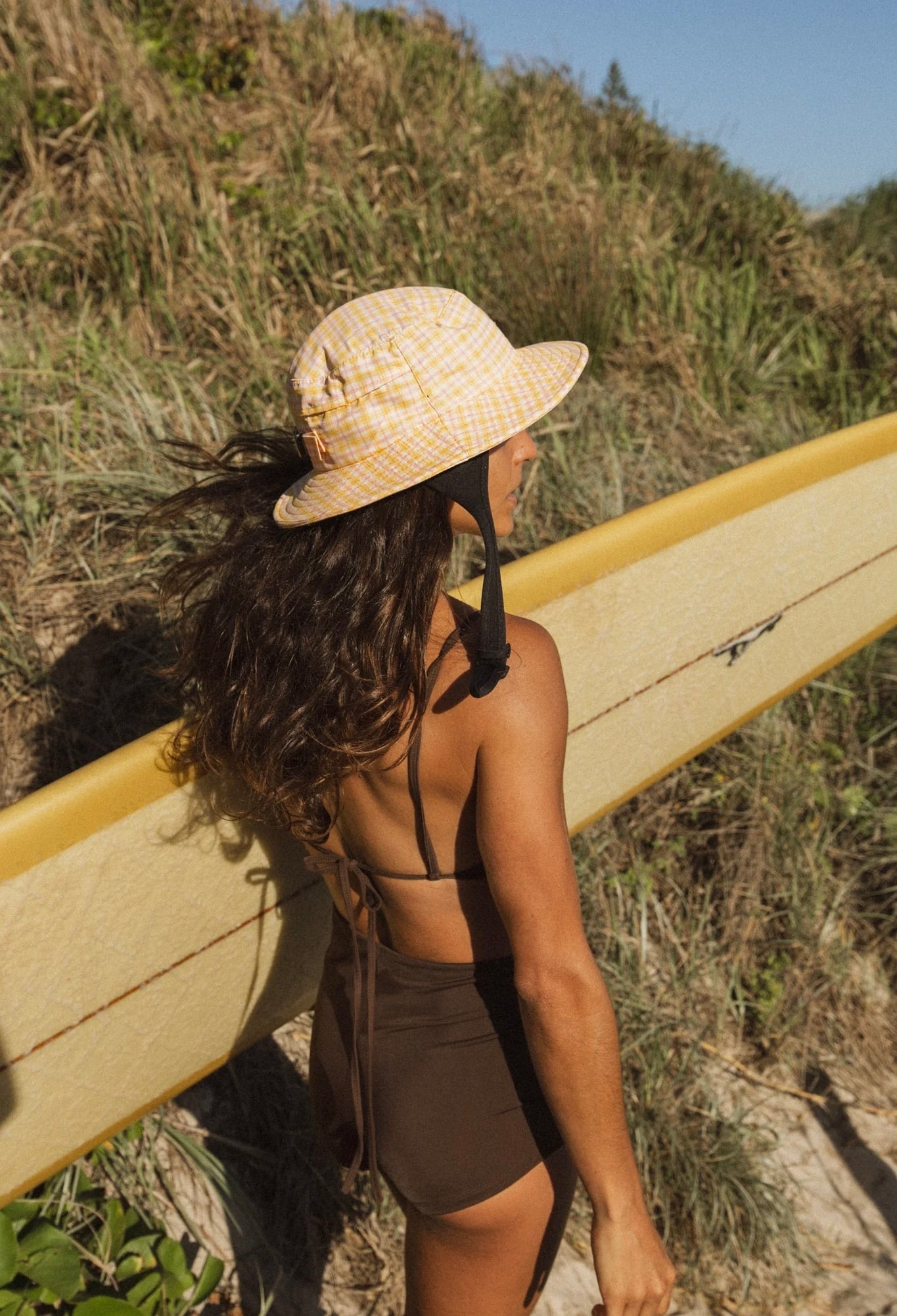 このサーフハットで、あなたの波乗りが更にうまくなるかも!?ツバが大きいので、厳しいお昼直後のまぶしさを軽減し、快適なサーフィンができますよ。